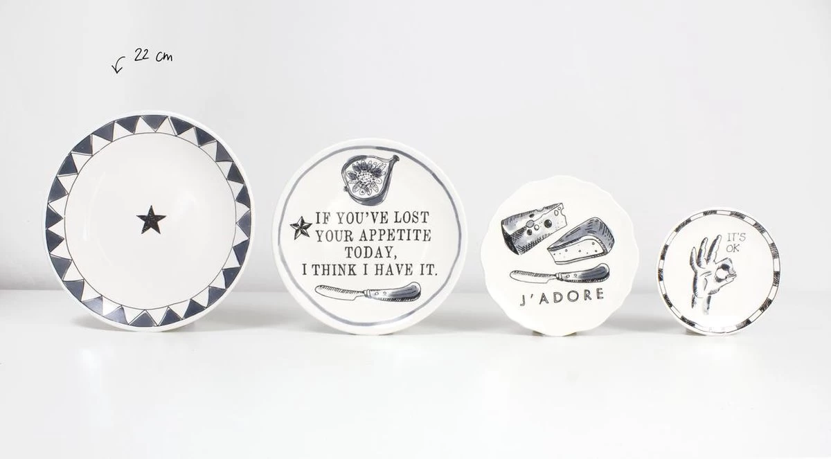 De zwart-witte tegenhanger van het bekende Blondservies is er. BLOND X NOIR. Herkenbaar handcrafted, met een ingetogener uitstraling. Tót je de tekst leest op het bord: I licked it so it’s mine. Nu dus óók Blond Amsterdam voor wie minder van het bonte en blozende is.