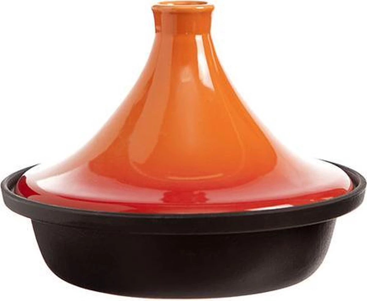 Cosy & Trendy Tajine Zwart / Oranje – Gietijzeren Schaal – Ø25cm – Geschikt Voor Inductie