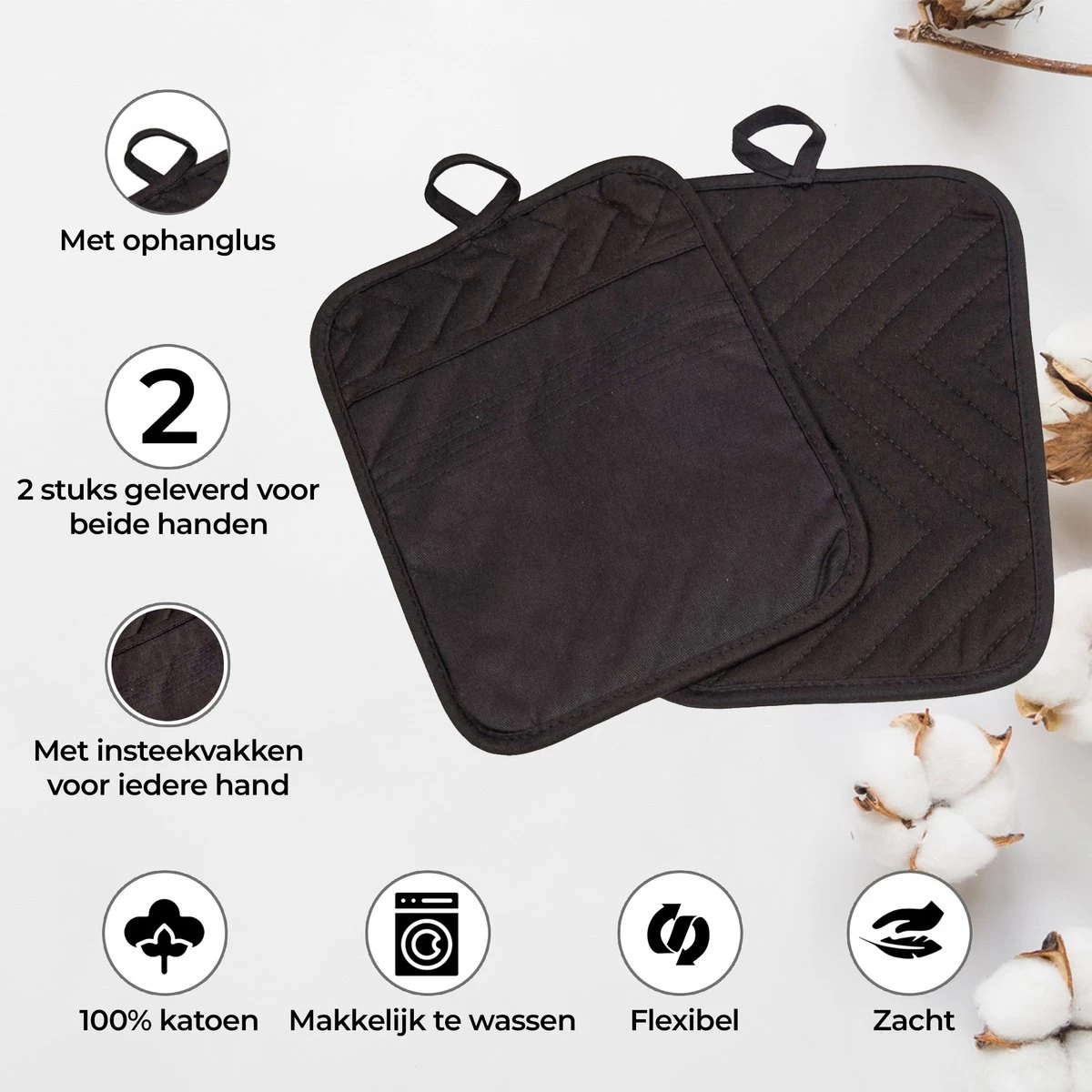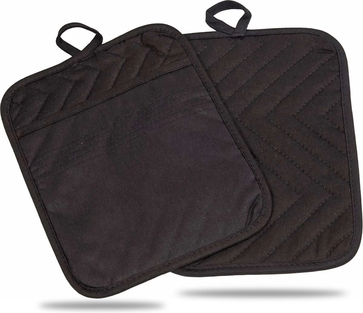 Roegaarden Pannenlappen – Pannenlap – 2 Stuks – Met Insteekvakken – Zwart