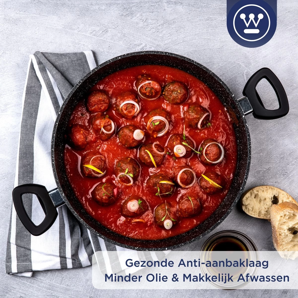 Westinghouse Hapjespan Inductie – Ø 32 Cm – Zwart Marmer – Met Deksel