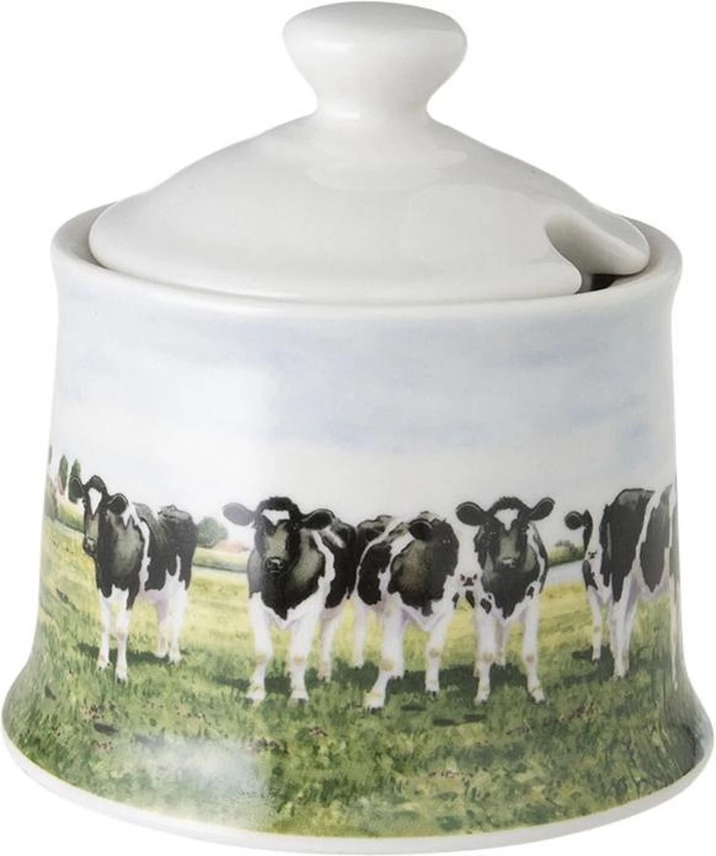 Maak jouw serviesset helemaal compleet met deze mooie porseleinen suikerpot van Wiebe van der Zee. Inspiratie voor zijn serviescollectie haalt Wiebe uit de Hollande landschappen. De tot in detail geschilderde gevlekte koeien nemen je mee naar de platte weidelanden, typisch voor zijn geboortestreek. Niet alleen heel praktisch, maar ook een geweldig decoratiestuk voor op je tafelnbsp