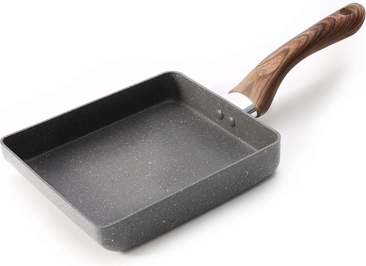 - De moderne vierkante vorm maakt de pan geschikt voor het bakken van vlees, groenten, eieren, omeletten, crêpes, pannenkoeken, pannenkoeken enz.